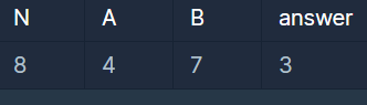 ๋ฌธ์ ์ค๋ช โณโณ ๊ฒ์๋ํ๊ฐ ๊ฐ์ต๋์์ต๋๋ค. ์ด ๋ํ๋ N๋ช ์ด ์ฐธ๊ฐํ๊ณ , ํ ๋๋จผํธ ํ์์ผ๋ก ์งํ๋ฉ๋๋ค. N๋ช ์ ์ฐธ๊ฐ์๋ ๊ฐ๊ฐ 1๋ถํฐ N๋ฒ์ ์ฐจ๋ก๋๋ก ๋ฐฐ์ ๋ฐ์ต๋๋ค. ๊ทธ๋ฆฌ๊ณ , 1๋ฒ↔2๋ฒ, 3๋ฒ↔4๋ฒ, ... , N-1๋ฒ↔N๋ฒ์ ์ฐธ๊ฐ์๋ผ๋ฆฌ ๊ฒ์์ ์งํํฉ๋๋ค. ๊ฐ ๊ฒ์์์ ์ด๊ธด ์ฌ๋์ ๋ค์ ๋ผ์ด๋์ ์ง์ถํ ์ ์์ต๋๋ค. ์ด๋, ๋ค์ ๋ผ์ด๋์ ์ง์ถํ ์ฐธ๊ฐ์์ ๋ฒํธ๋ ๋ค์ 1๋ฒ๋ถํฐ N/2๋ฒ์ ์ฐจ๋ก๋๋ก ๋ฐฐ์ ๋ฐ์ต๋๋ค. ๋ง์ฝ 1๋ฒ↔2๋ฒ ๋ผ๋ฆฌ ๊ฒจ๋ฃจ๋ ๊ฒ์์์ 2๋ฒ์ด ์น๋ฆฌํ๋ค๋ฉด ๋ค์ ๋ผ์ด๋์์ 1๋ฒ์ ๋ถ์ฌ๋ฐ๊ณ , 3๋ฒ↔4๋ฒ์์ ๊ฒจ๋ฃจ๋ ๊ฒ์์์ 3๋ฒ์ด ์น๋ฆฌํ๋ค๋ฉด ๋ค์ ๋ผ์ด๋์์ 2๋ฒ์ ๋ถ์ฌ๋ฐ๊ฒ ๋ฉ๋๋ค. ๊ฒ์์ ์ต์ข ํ ๋ช ์ด ๋จ์ ๋๊น์ง ์งํ๋ฉ๋๋ค. ์ด๋, ์ฒ์ ๋ผ์ด๋์์ A๋ฒ์ ๊ฐ์ง ์ฐธ๊ฐ์๋ ๊ฒฝ์์๋ก ์๊ฐํ๋ B๋ฒ ์ฐธ๊ฐ์์ ๋ช ๋ฒ์งธ ๋ผ์ด๋์์ ๋ง๋๋์ง ๊ถ๊ธํด์ก์ต๋๋ค. ๊ฒ์ ์ฐธ๊ฐ์ ์ N, ์ฐธ๊ฐ์ ๋ฒํธ A, ๊ฒฝ์์ ๋ฒํธ B๊ฐ ํจ์ solution์ ๋งค๊ฐ๋ณ์๋ก ์ฃผ์ด์ง ๋, ์ฒ์ ๋ผ์ด๋์์ A๋ฒ์ ๊ฐ์ง ์ฐธ๊ฐ์๋ ๊ฒฝ์์๋ก ์๊ฐํ๋ B๋ฒ ์ฐธ๊ฐ์์ ๋ช ๋ฒ์งธ ๋ผ์ด๋์์ ๋ง๋๋์ง return ํ๋ solution ํจ์๋ฅผ ์์ฑํด ์ฃผ์ธ์. ๋จ, A๋ฒ ์ฐธ๊ฐ์์ B๋ฒ ์ฐธ๊ฐ์๋ ์๋ก ๋ถ๊ฒ ๋๊ธฐ ์ ๊น์ง ํญ์ ์ด๊ธด๋ค๊ณ ๊ฐ์ ํฉ๋๋ค. ์ ํ์ฌํญ