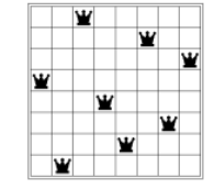 8*8 체스보드에 8개의 퀸을 서로 공격하지 못하게 놓는 문제는 잘 알려져 있는 문제이다.퀸은 같은 행, 열, 또는 대각선 위에 있는 말을 공격할 수 있다. 이 문제의 한가지 정답은 아래 그림과 같다.